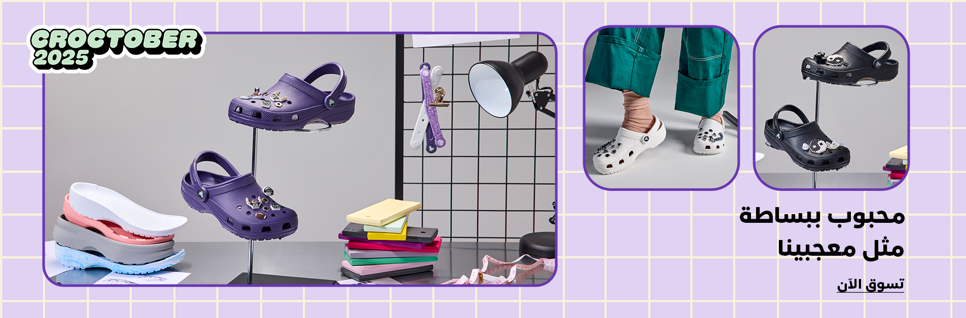 القباقيب والأحذية سهلة الارتداء الكلاسيكيةنظراً لكونها من أشهر وأكثر التصميمات شيوعاً من بين أحذيتنا، فإن القباقيب والأحذية سهلة الارتداء الكلاسيكية تأتي بأشكال متنوعة من الألوان والأنماط وتتميز بسهولة تنظيفها، فهي تمثل أساساً لتعاوننا الرائع. تستوعب القباقيب أيضاً خيارات لا حصر لها من التخصيص بفضل مجموعتنا المتغيرة باستمرار من طبعات إكسسوارات جيبيتز.